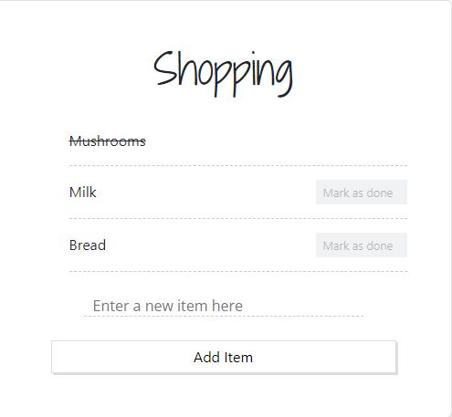 In this case it is a todo application where you can create your own todo list and add items specific to that list. You list all the tasks/jobs you need to complete. When you have completed the task you hit the mark as done button and the task is marked off the list.